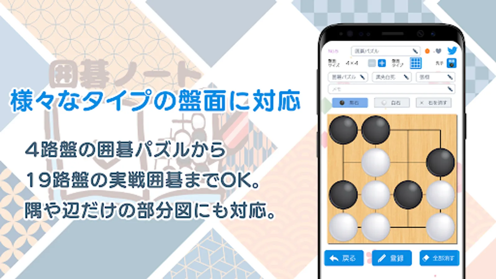 ・Supports sizes from 4x4 Go puzzles to 19x19 Go games