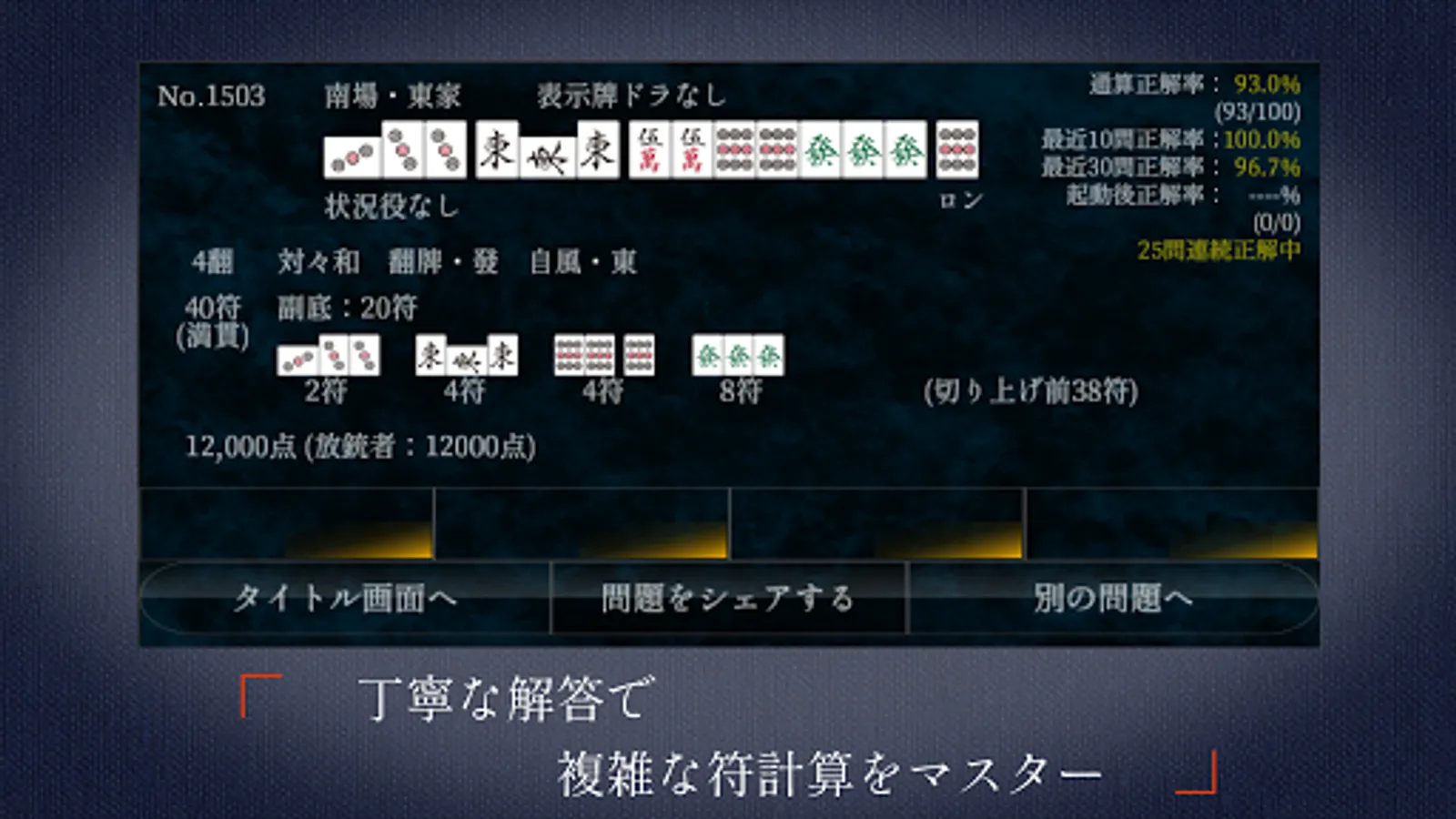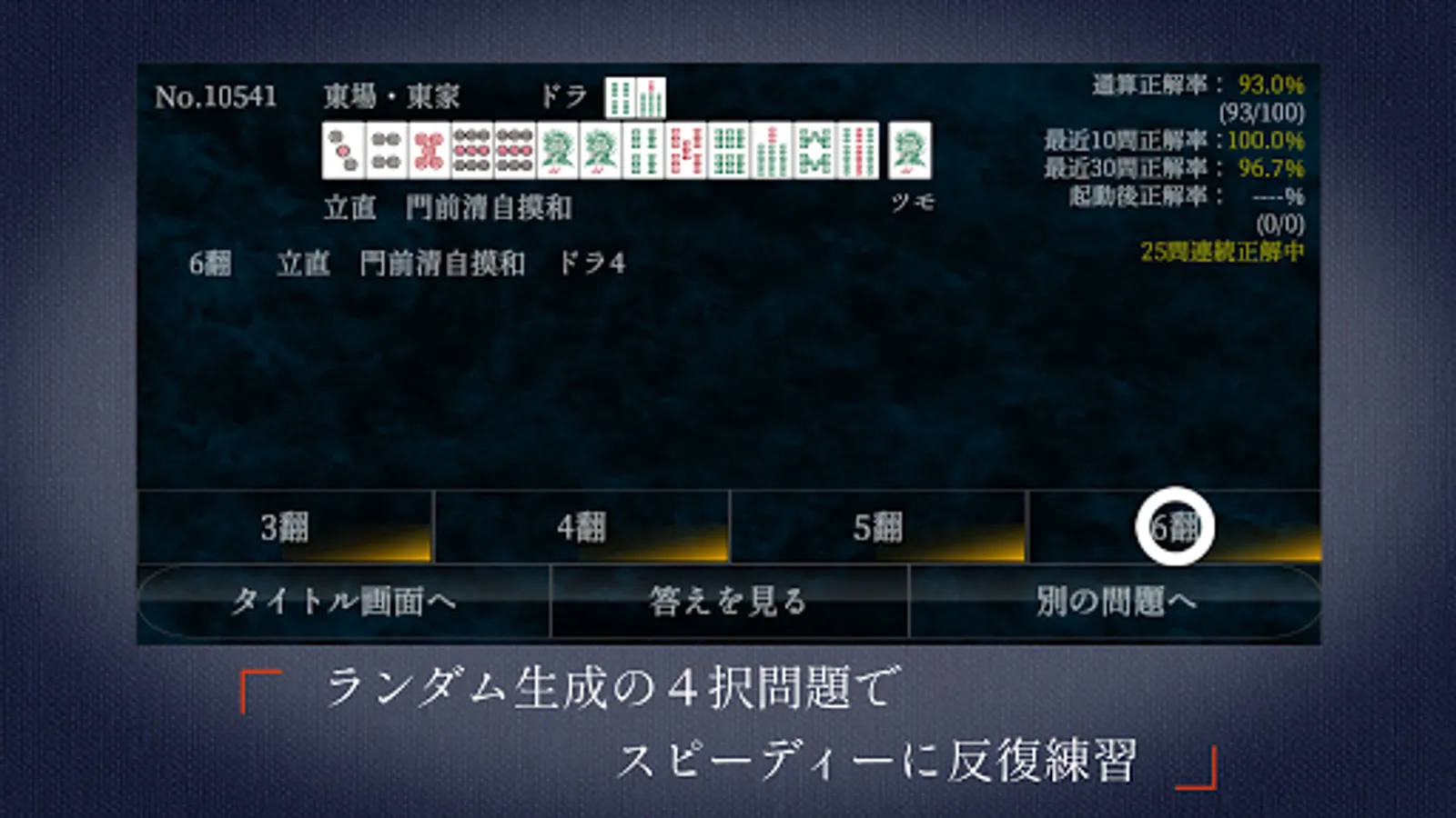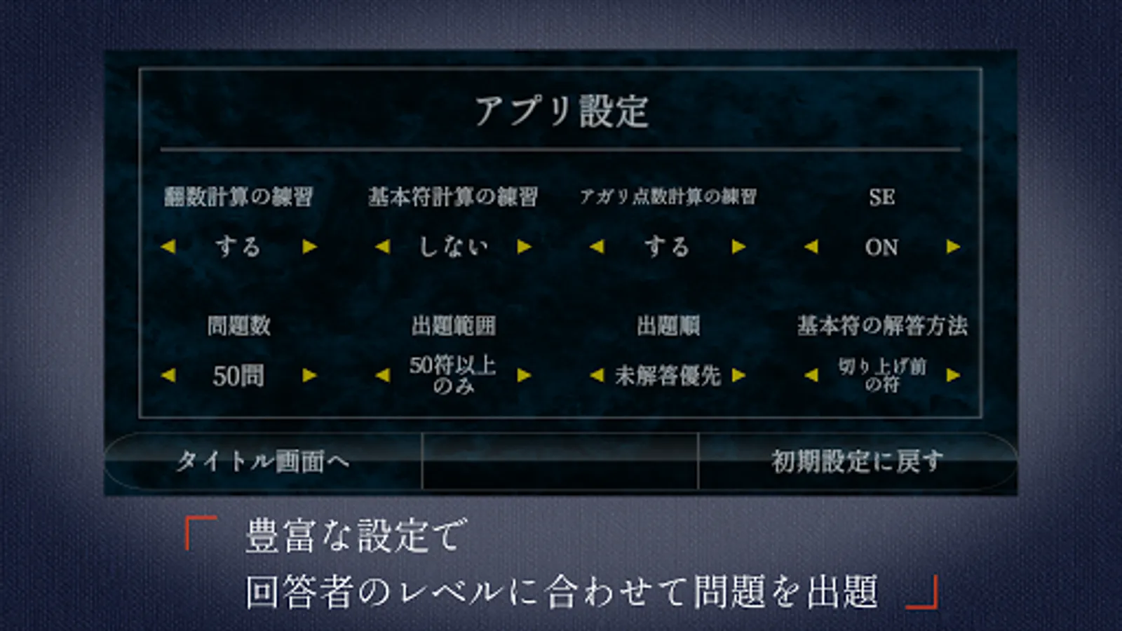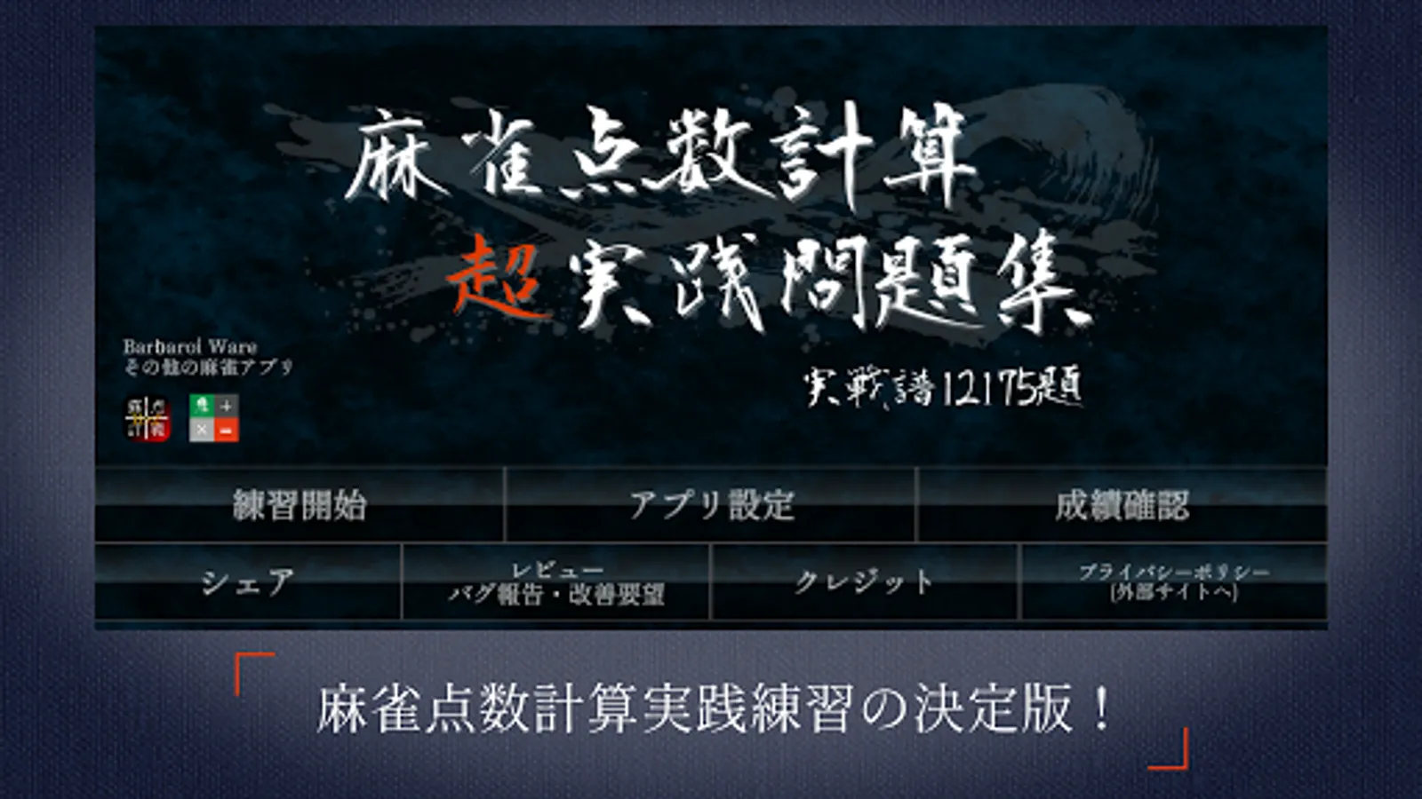 In the review section, etc., we received the opinion that the number of exercises in the practice question collection is small, so we have newly developed an application specialized for the practical problem part of mahjong score calculation.