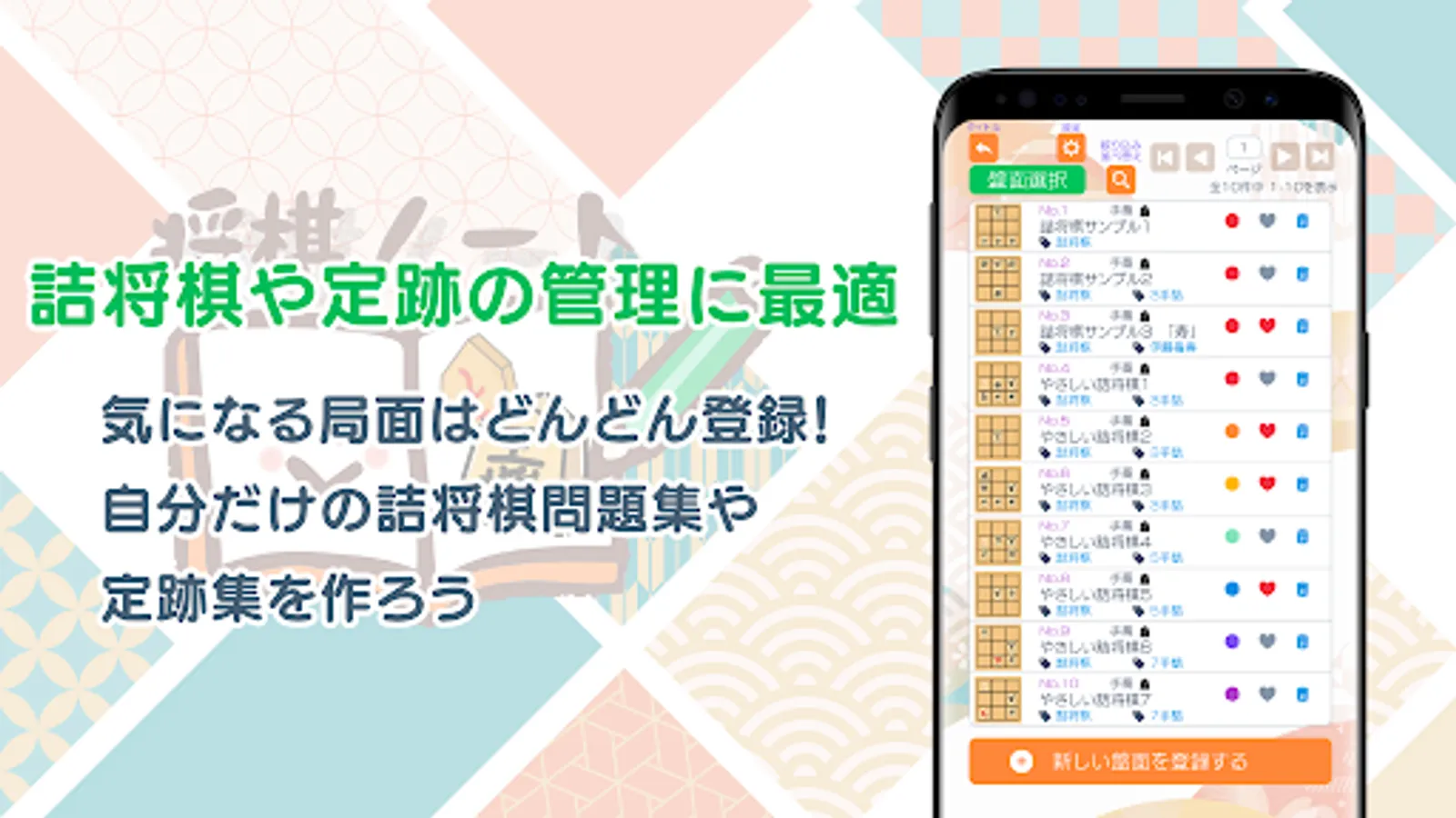 "Shogi Note" is a free app that allows you to freely register problems, joseki, and game records of shogi, and manage and record the board and procedures.
