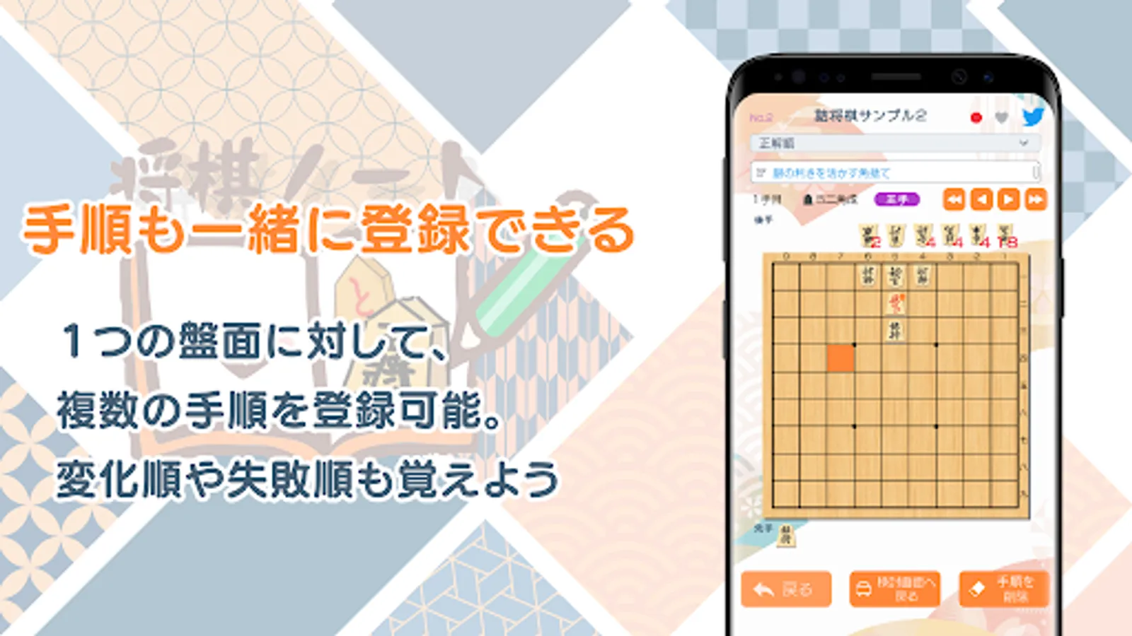 -Since multiple procedures can be registered for one board, it is also possible to register the correct answer order and the failure order of Tsume Shogi, and to deeply study the change order of the joseki.