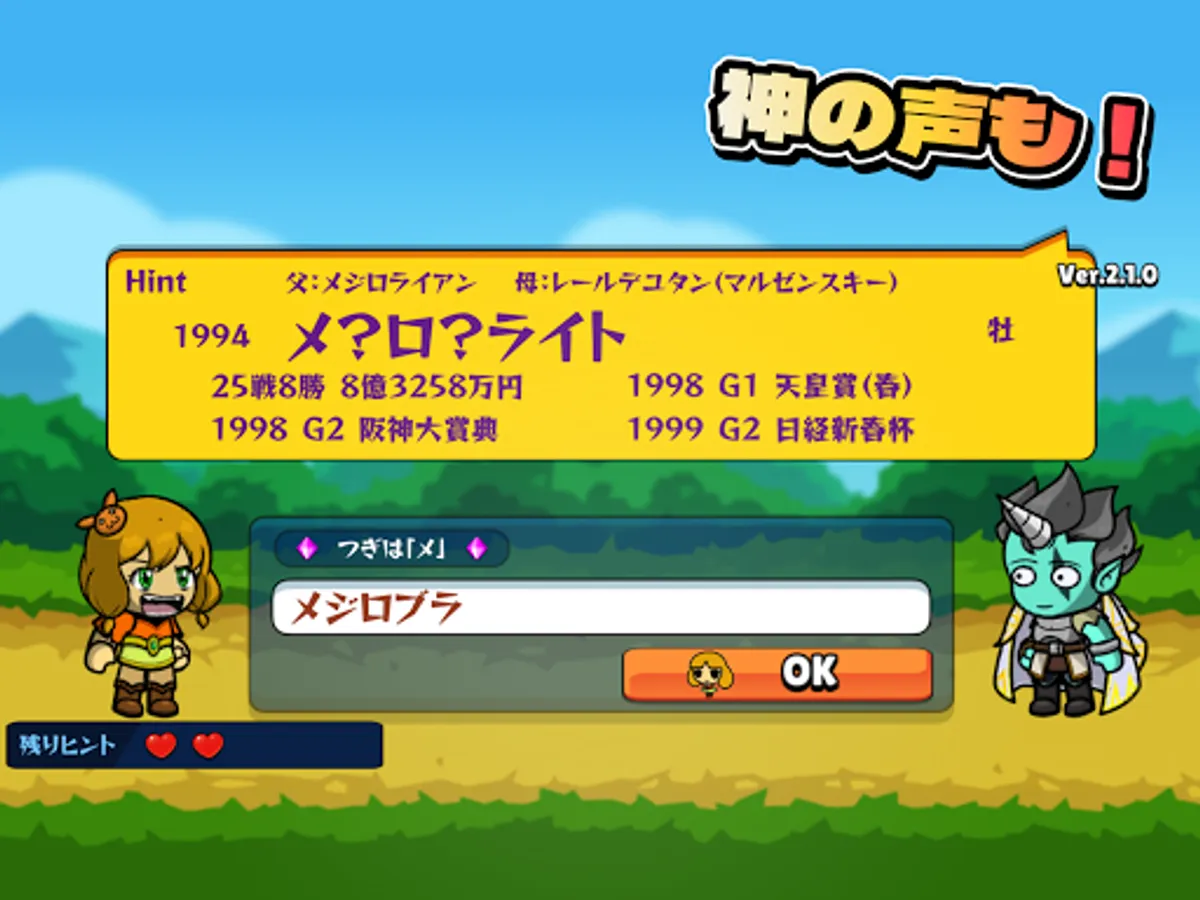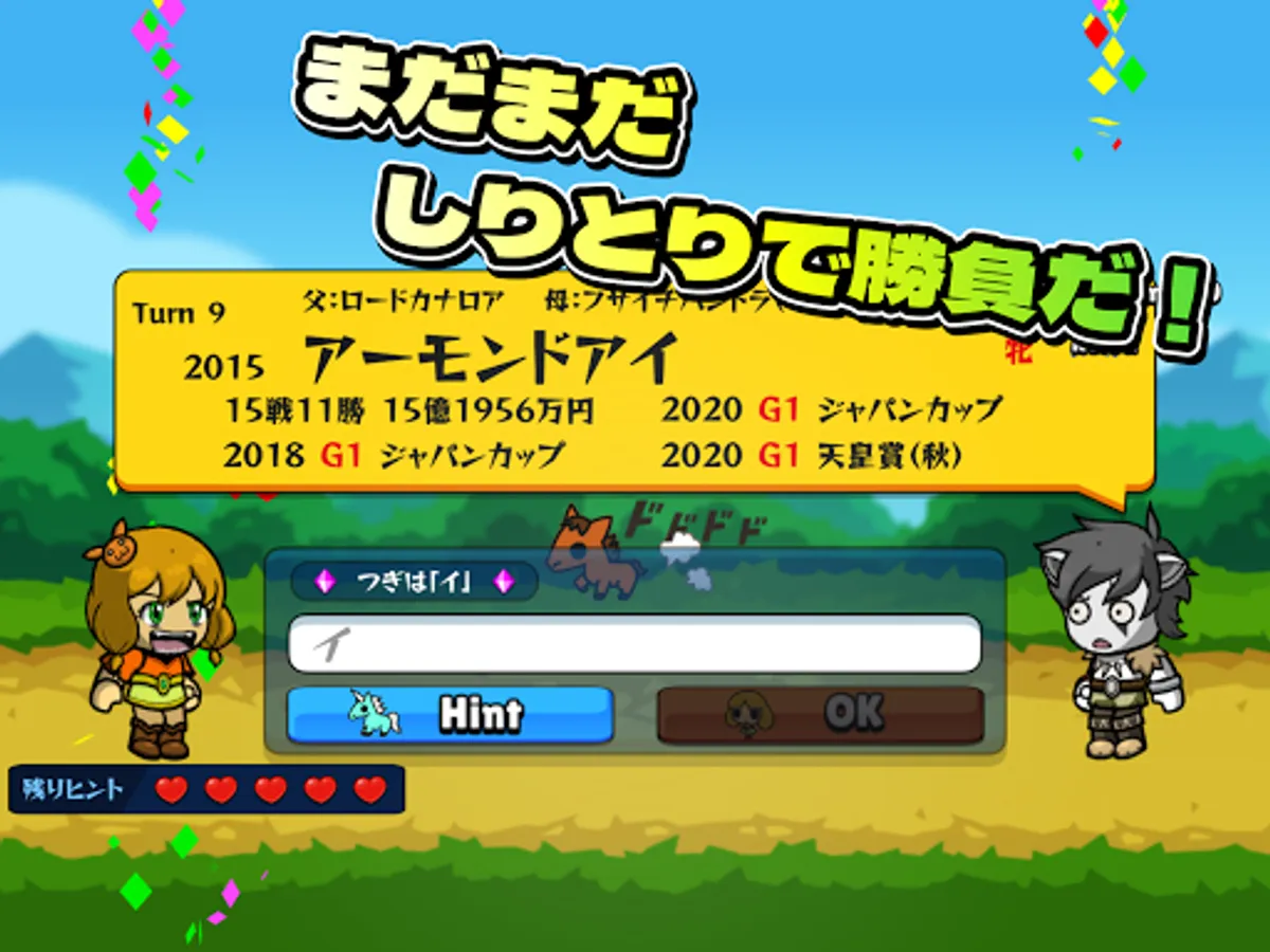 So, probably the only horse racing (horse name) shiritori app in the world, it has been renewed and re-appeared!