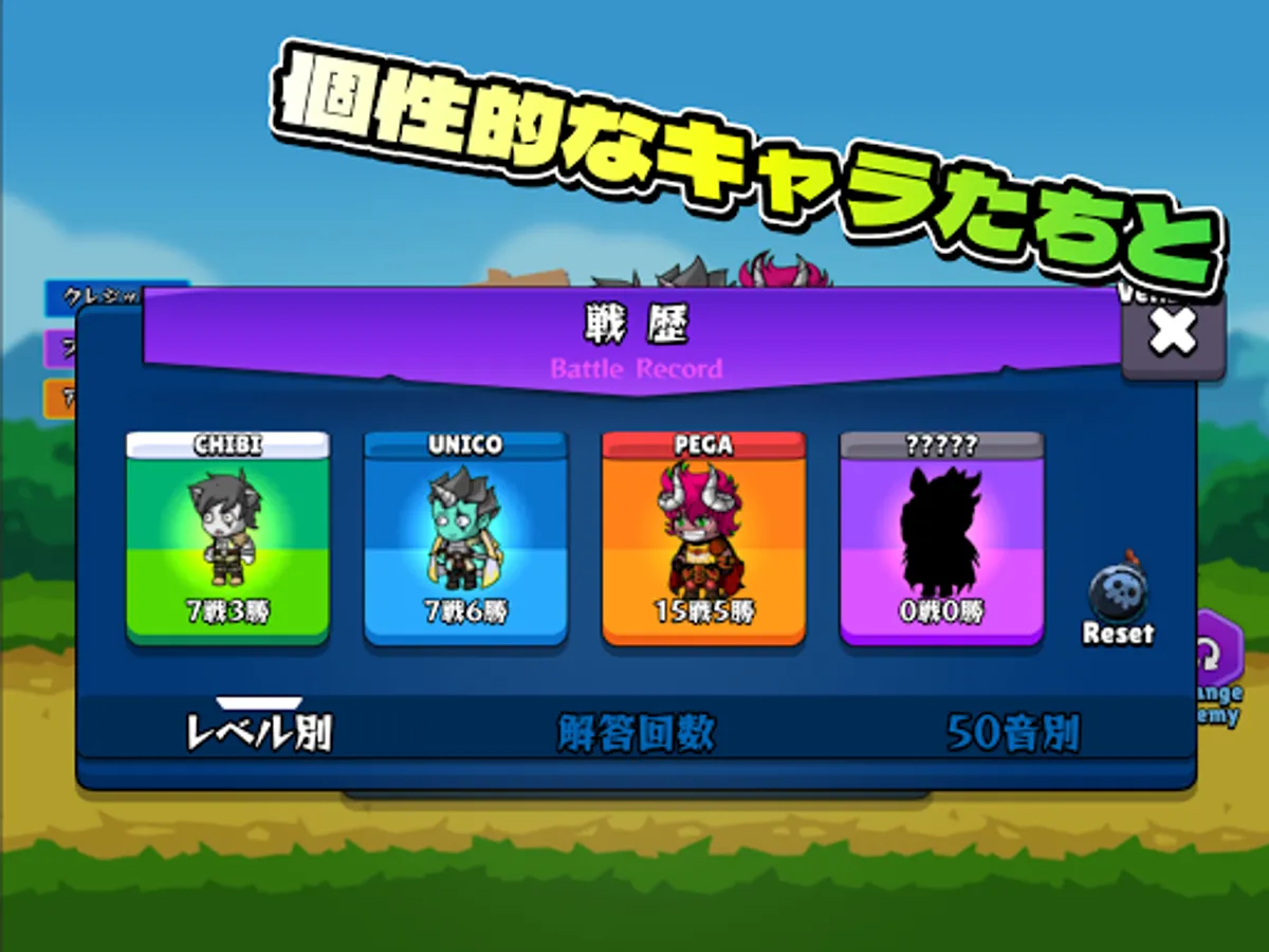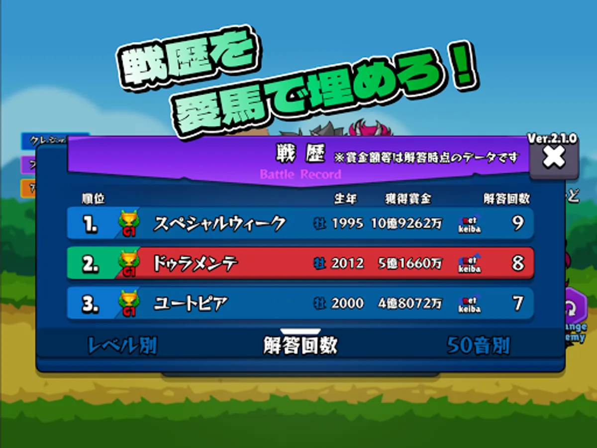 You can now check the player's shiritori battle history in a list, such as the number of wins and losses by enemy character, the number of answers for each horse, and the list of racehorses that often appear by 50 sounds.