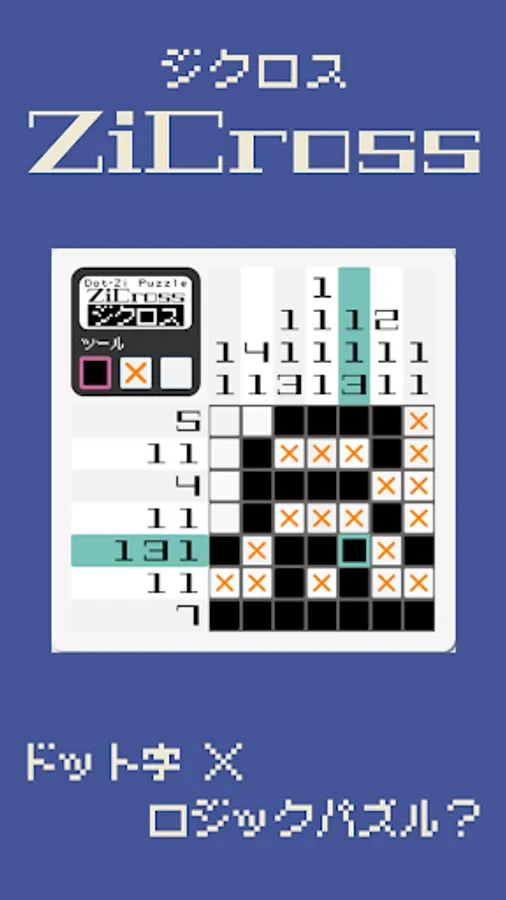 ZiCross is a new genre of puzzle game that combines picross (illustration logic/nonogram) and dots.