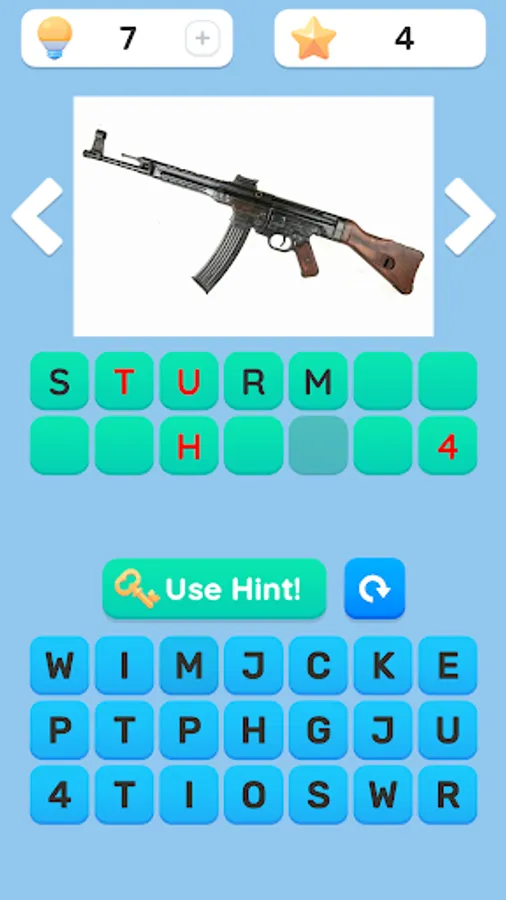 ★ Hints! Each guessed weapon gives one hint!
