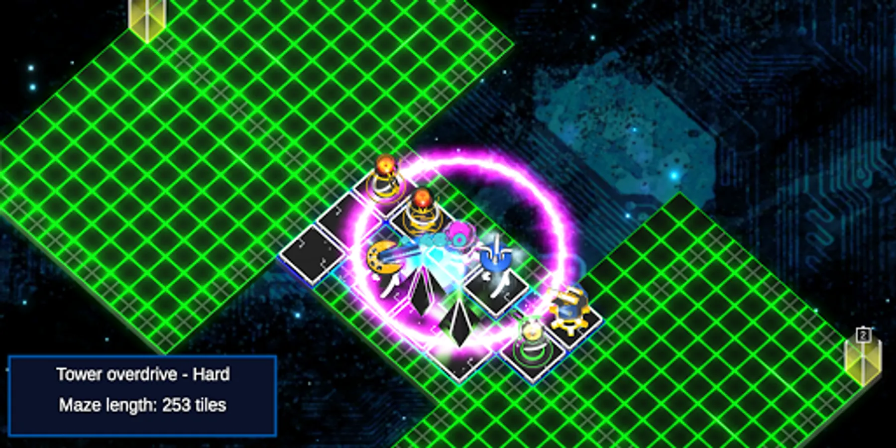 In this tower defense, enemies have to go through several waypoints on the grid before reaching the end of the maze. Use it at your advantage in order to build a maze that will trap them in for as long as possible!