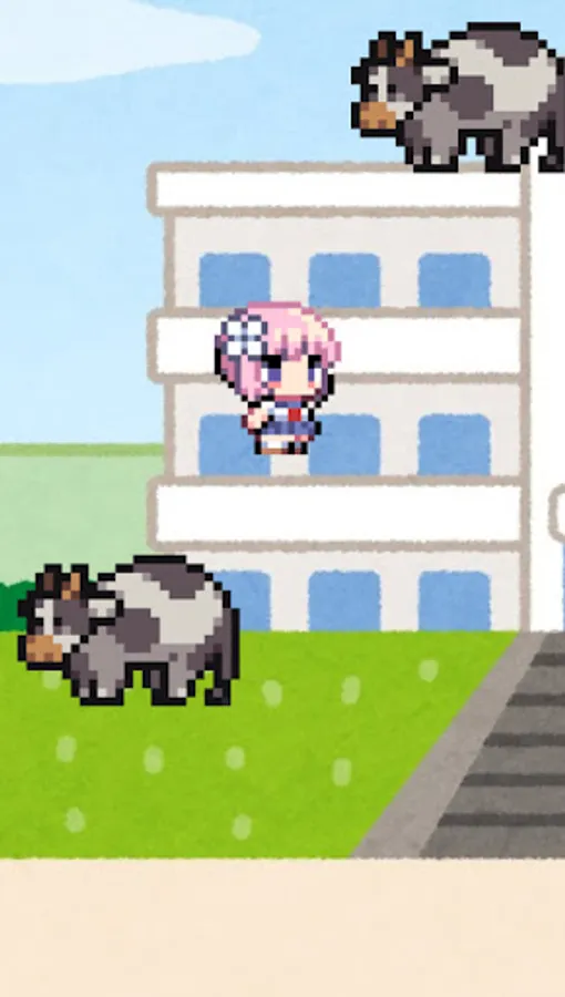 It is an action game where you control a girl student who is likely to be late and avoid cows approaching from the left and right.