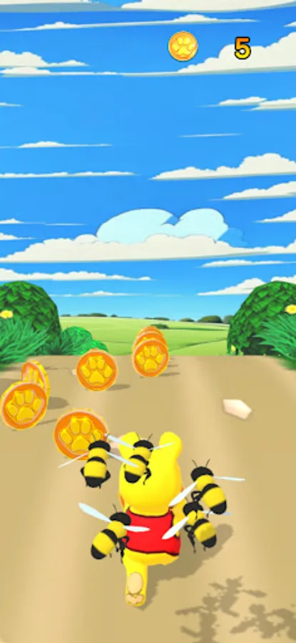 Winnie the Bear is on the run! He’s running through the forest with a beehive full of honey, desperately trying to escape a swarm of angry bees. The bees are close behind, buzzing angrily and determined to get their honey back. Winnie can hear their angry hums, which only spurs him on to run faster.