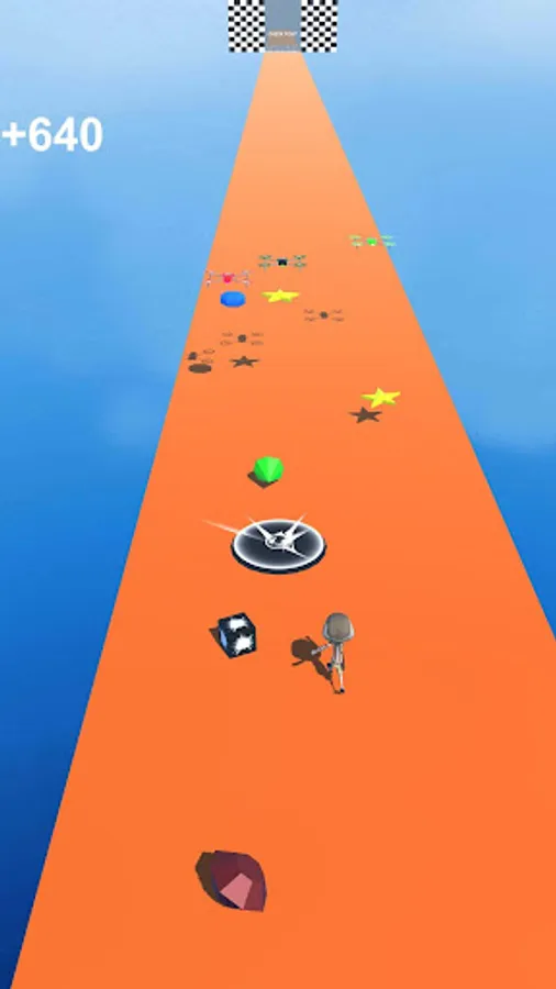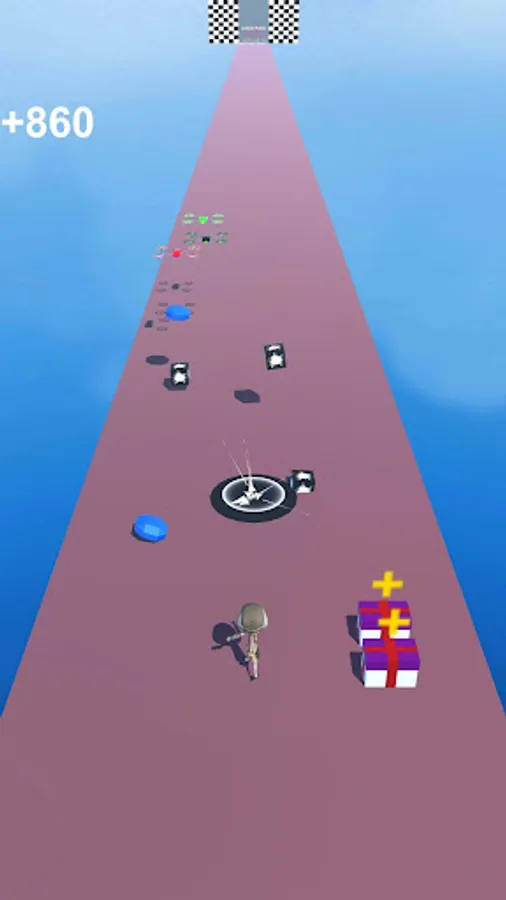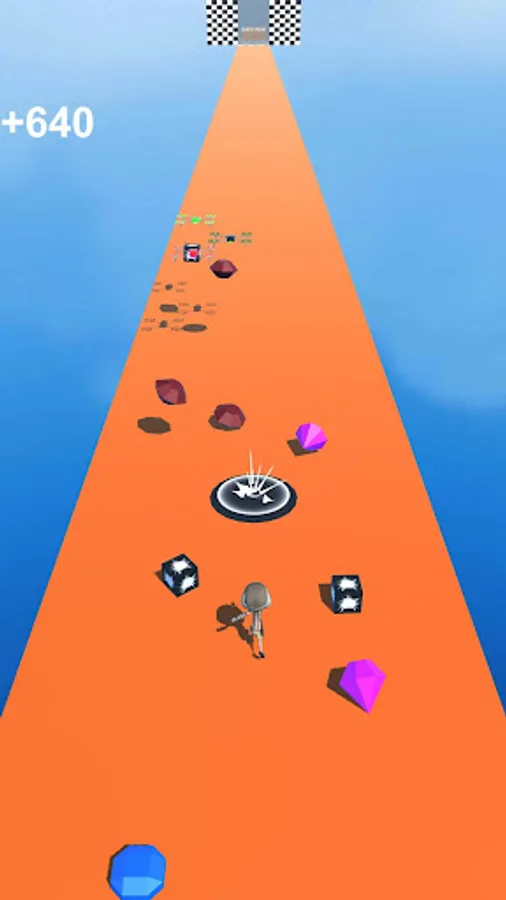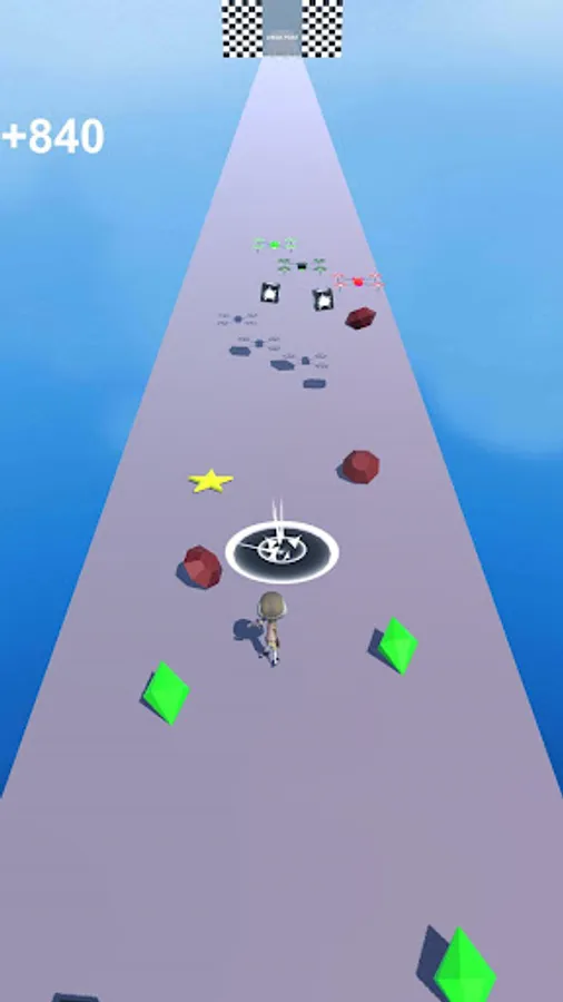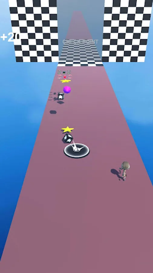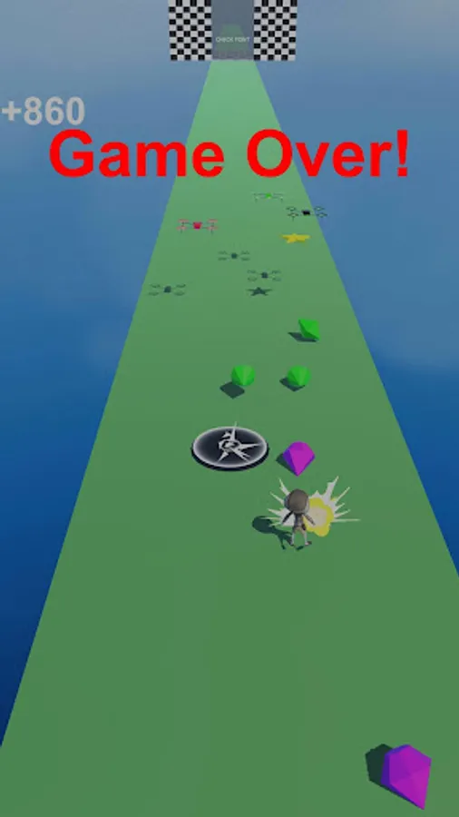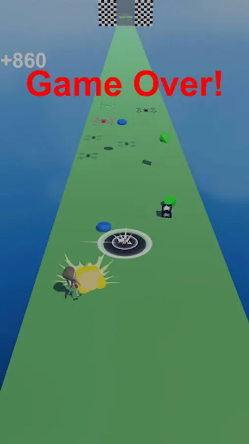 A runner game whereby the player controls a black hole that moves ahead of the character (Buddy) and swallows up obstacles to protect Buddy from colliding with them.