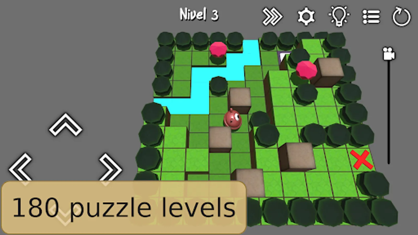This cube pushing puzzle Game is an evolution of the clasic sokoban and box pushing puzles with a multilevel 3D environment. Enemies, spells and traps add another level of complexity to the puzles. After the some initial simple levels, the difficulty grows fast, and the puzles become unforgiving, sometimes even frustrating. You will need to be smart if you want to help Block.