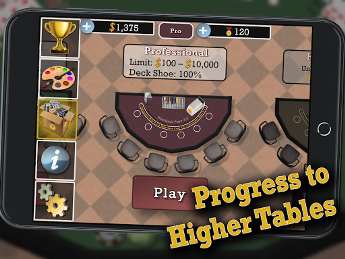 Make the game your own while practicing new betting strategies, table positioning, and basic blackjack strategy: