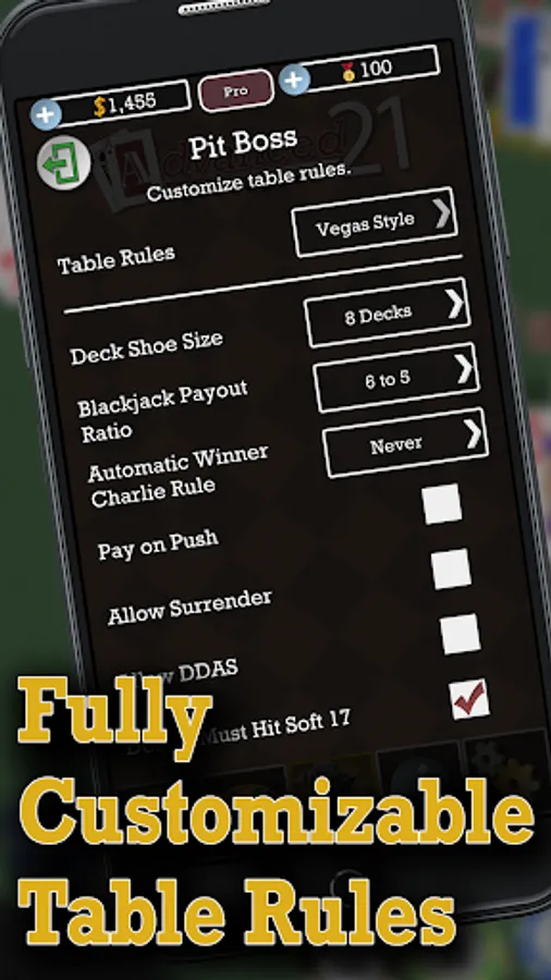 Advanced 21 Blackjack is the most realistic, free way to play twenty-one without setting foot a casino. With customizable table rules, graphics and play style, this blackjack game provides thousands of hours of playtime, strategy building and fun!