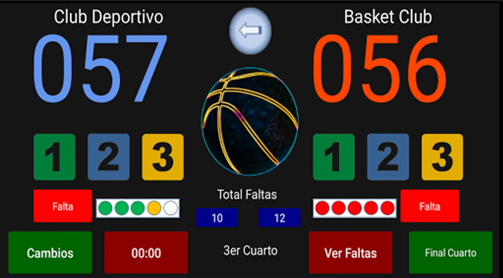 Basketball Scoreboard with the possibility of saving information and obtaining Statistics of each match.