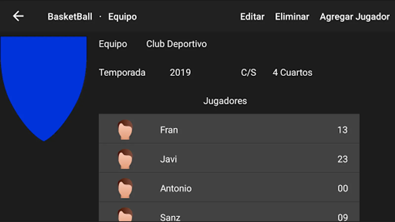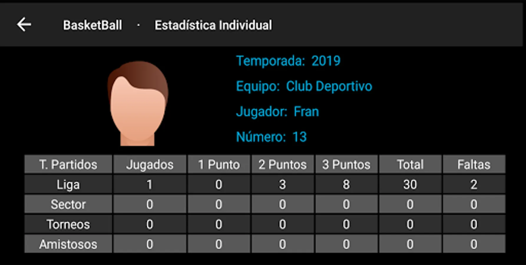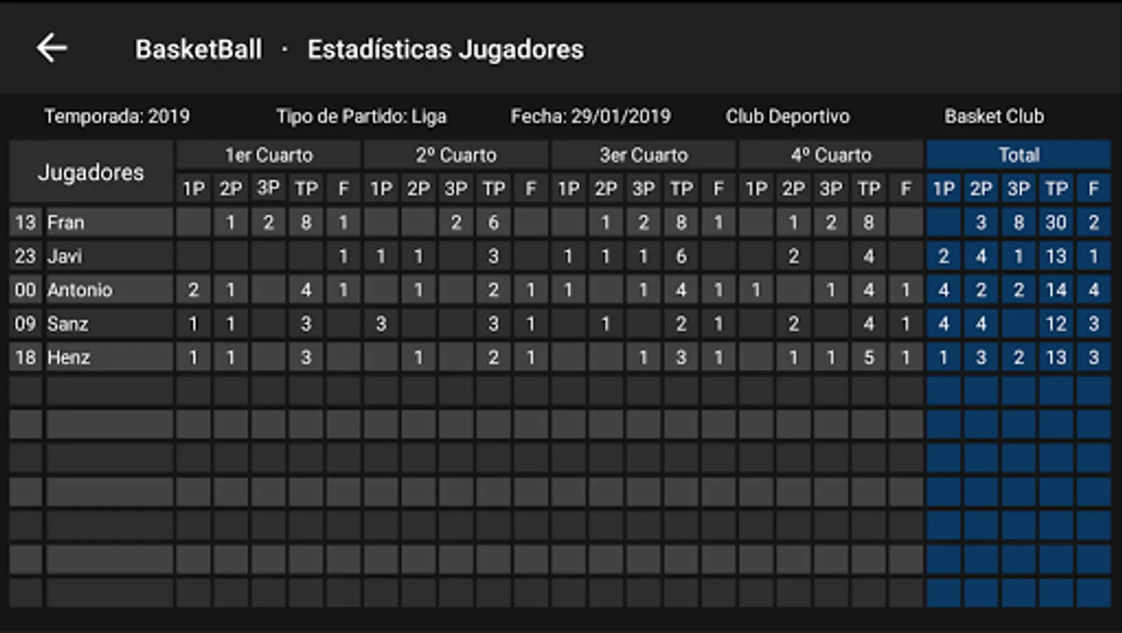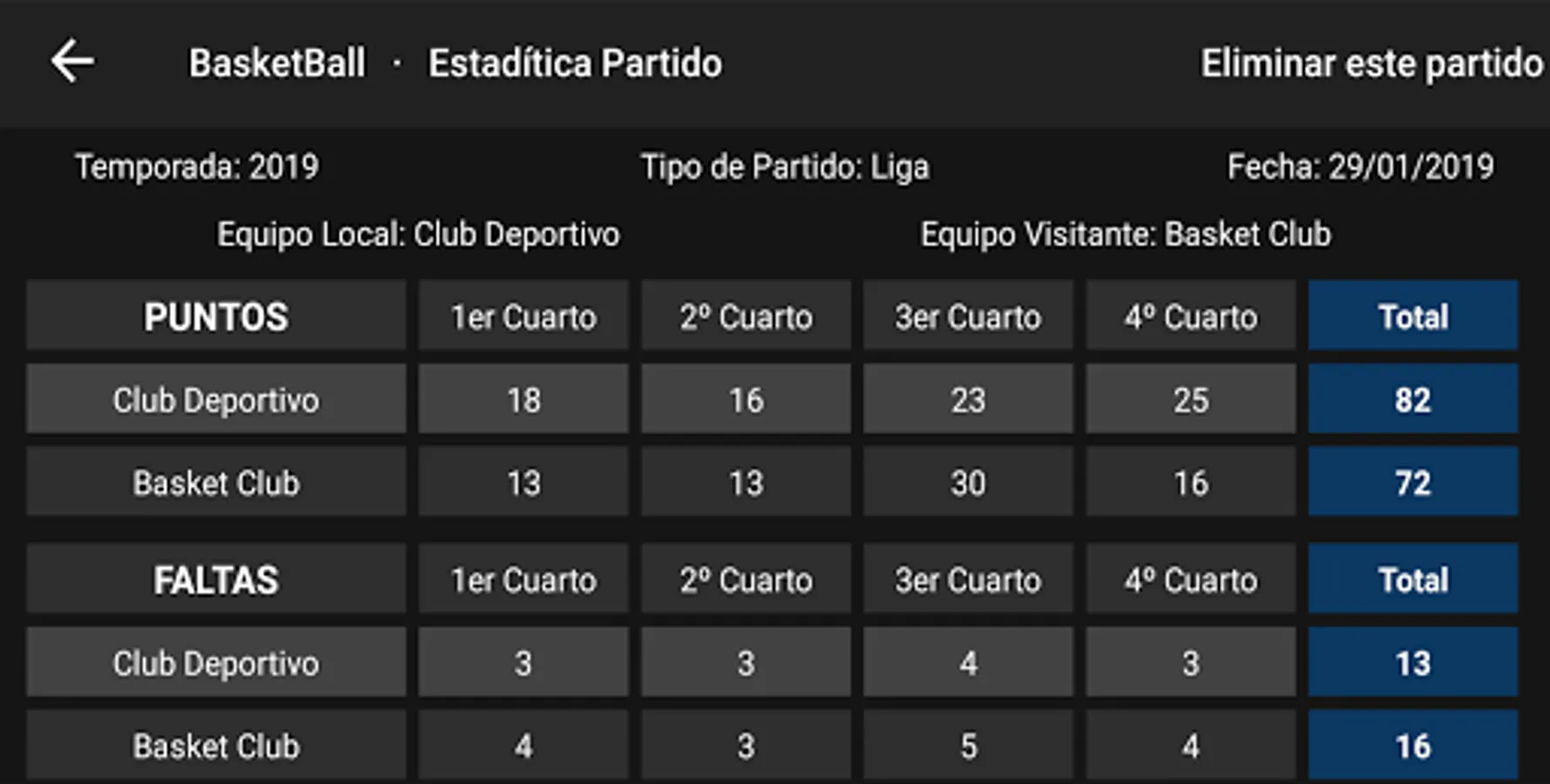 Application for all those who have their children on a Basketball Team and want to keep the data of the matches.