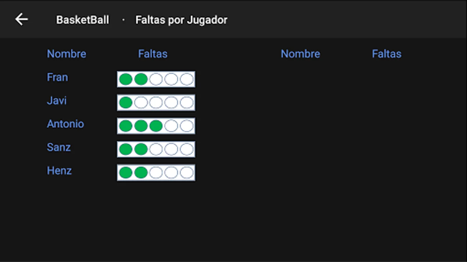 It allows to save the information of a @ or vari @ s hij @ s. Each @ with your team, and all the players @ s of our teams. Conserving only the general data (Points per quarter, total points, fouls per quarter and total fouls) of the rival teams.