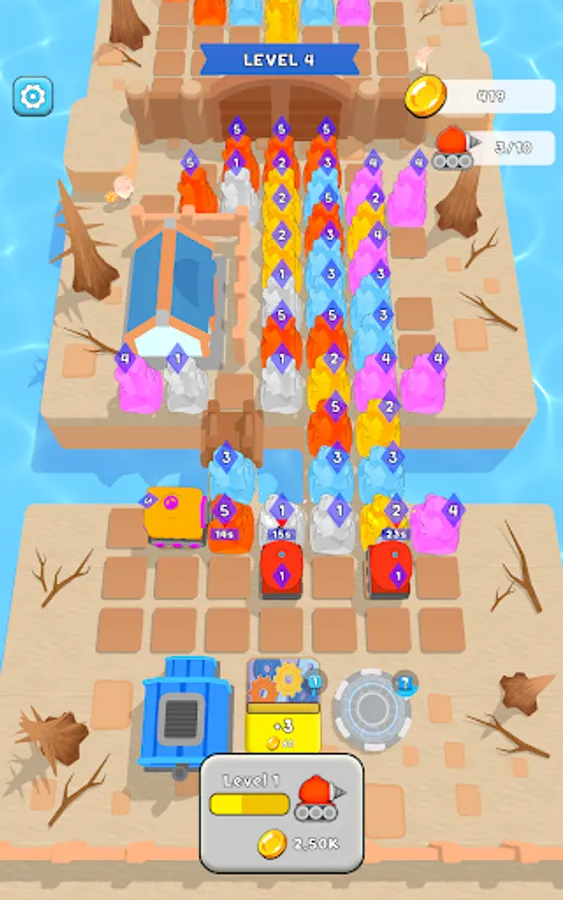 Join the world of Drill Merge 3D! You will enjoy smooth gameplay and amazing graphics. Create your strategy and combine drills to increase your progress. Smash all the mines and get rich!