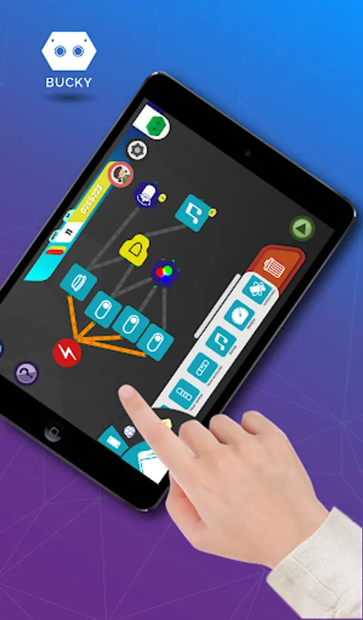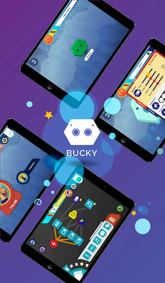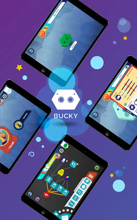 In this app you will discover the story of Bucky and other characters like Charly, Sophie and the maker girl Maggie while you develop skills for the technological future.