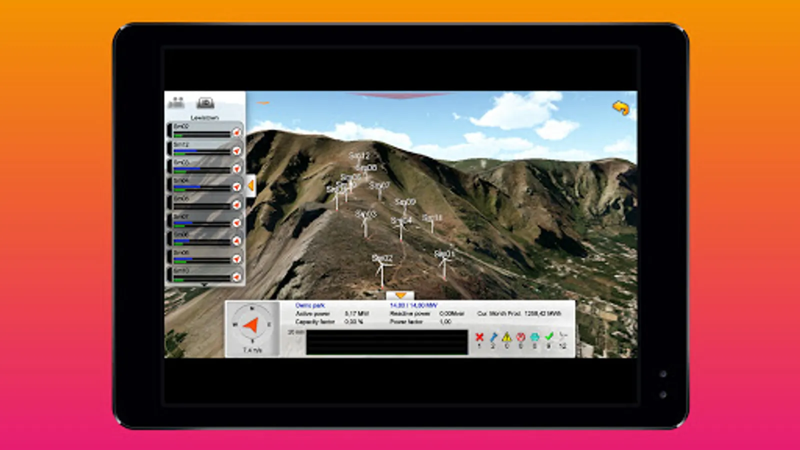 - Display real-time and historical information about wind farms in a photorealistic 3D environment that provides an overview of the wind farm's operations