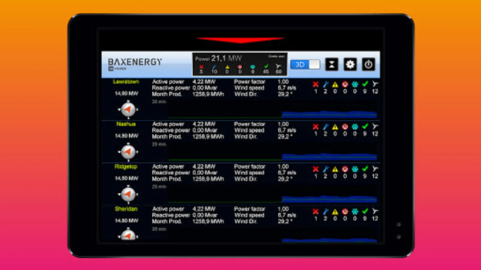 Bax3DViewer allows you to visualize and monitor over 100 different wind an PV asset in real-time, providing unparalleled insight into operational issues and opportunities for efficiency improvements.