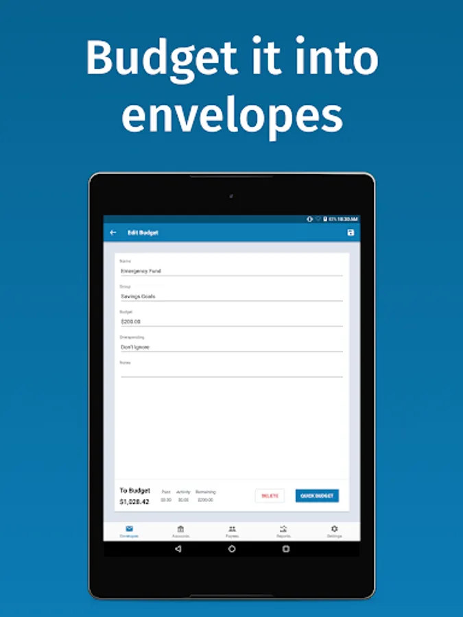 • Envelope style budgeting - uses a proven method to reduce debt and help you manage your personal expenses