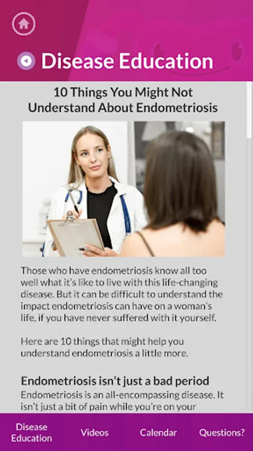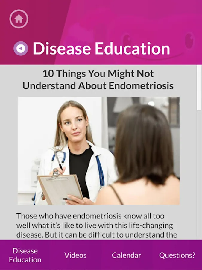 • Enable the patient to learn about endometriosis to helps the doctor save consultation time and improve consultation productivity.
