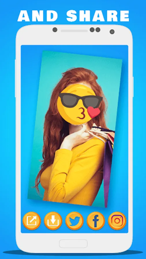 If you ask yourself how to “make your own emoji with your face”, don't worry! It's very simple! All you have to do is to add a cute selfie from your phone or take a new pic with your camera. Resize the photo to make the best fit and add our “emoji face photo sticker”. Then you can set your “funny emoji pictures” as a wallpaper, use it as a profile picture on any social media or simply send it to your friends and family! They will be amazed by your new “love emoji pictures”!