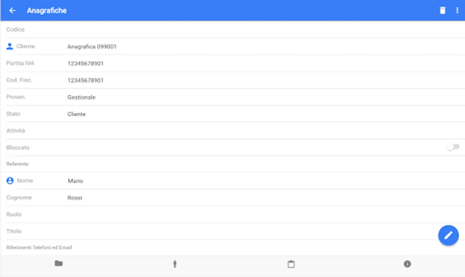 In addition to classic personal data can be stored even corporate contacts (ie the administrator, the sales manager, responsible agents, etc..), Additional contacts and all locations of the company. E 'can also view additional information (features) are typical of its business model and help you get to know your target audience.