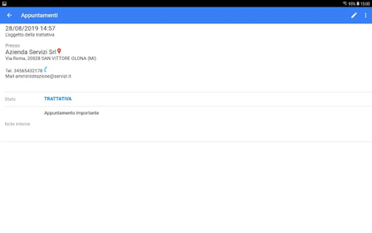 The agent can also enter new accounts or new appointments for activities of Free-Hunting, as well as insert the outcome appointments and fill in the visit (completely customizable).