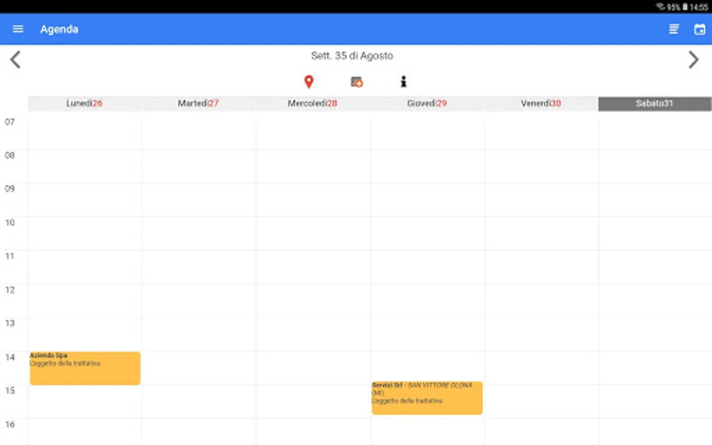 The agenda in graphical format, day or week, will help to organize in the best way your activities.