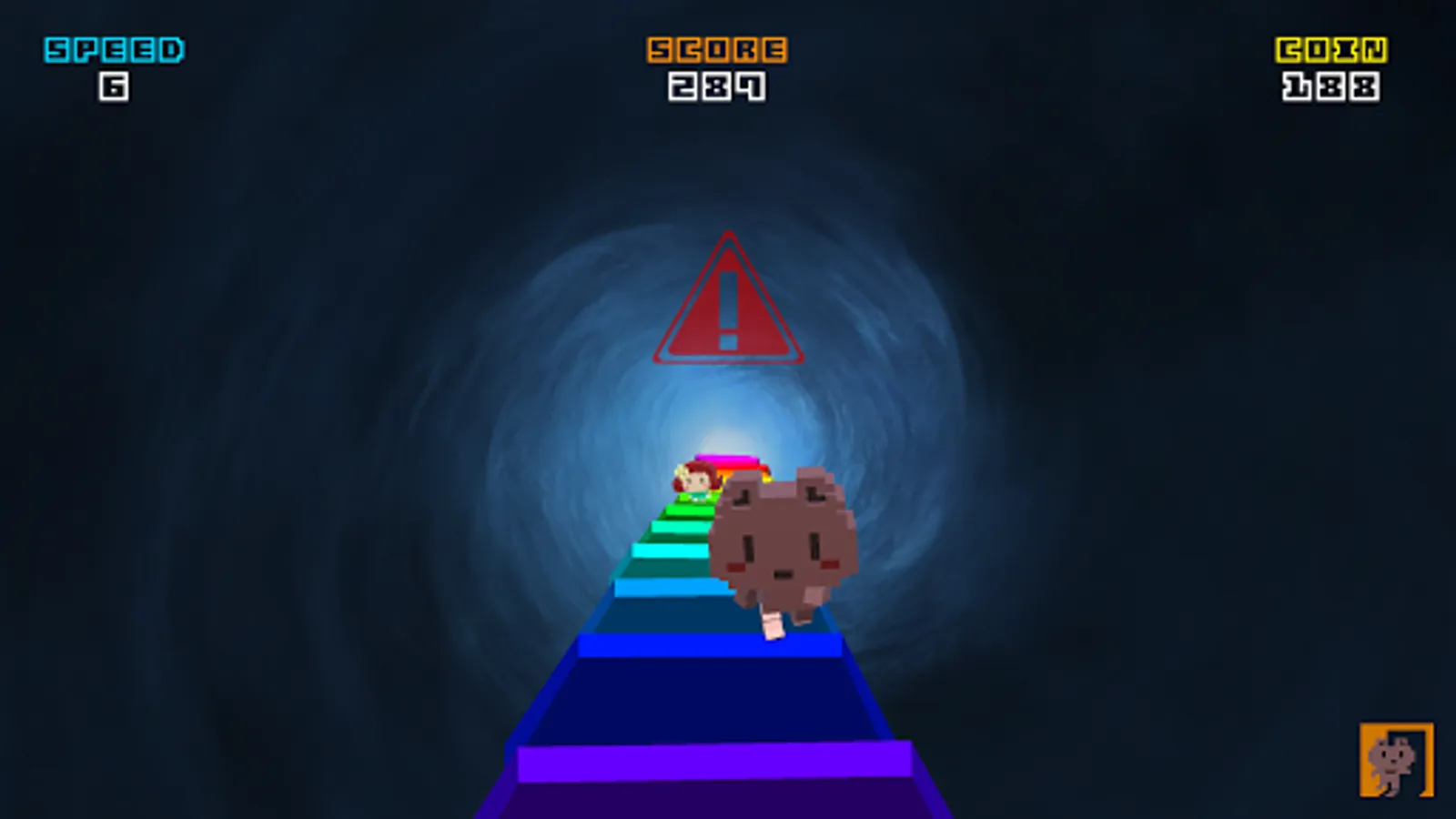 Train, Tank, Toilet, House... Run to the various blocks floating in space.