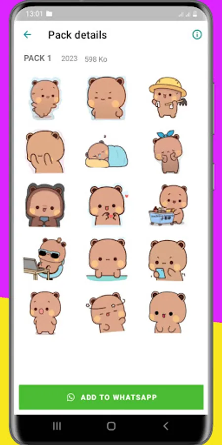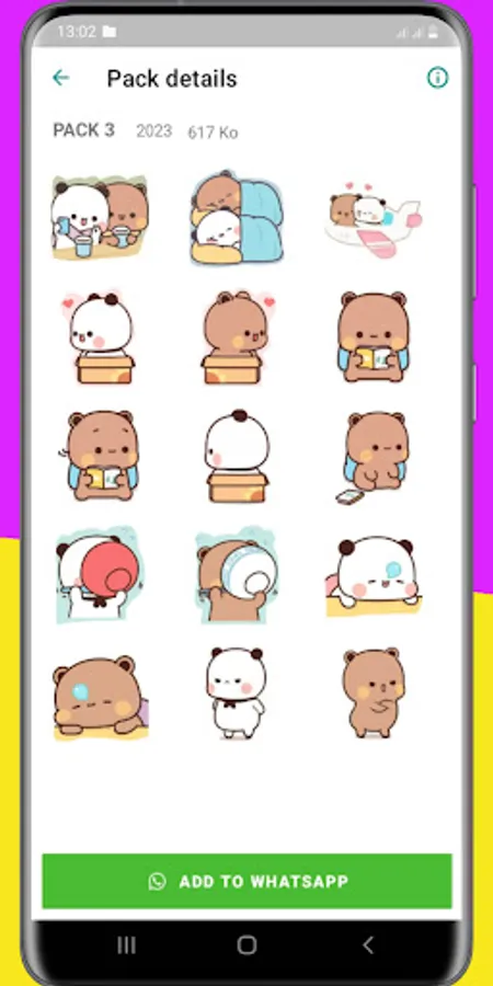 Bear Cute Panda WASticker is a fun and endearing Android application that brings joy and cuteness to WhatsApp conversations. With its extensive collection of adorable panda stickers and seamless integration with WhatsApp, users can express themselves creatively and playfully in their chats. Whether you're a panda enthusiast or just looking to add some charm to your messages, Bear Cute Panda WASticker is the perfect app to download and enjoy!