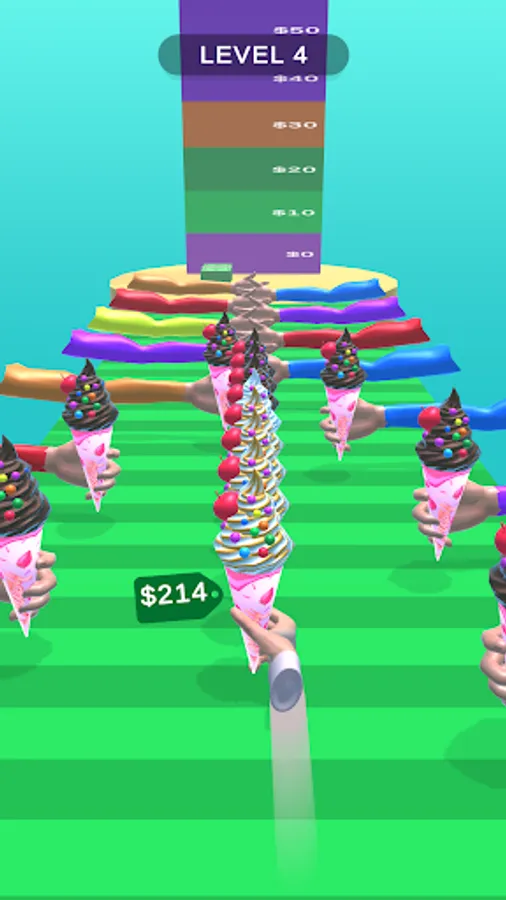 Pick and stack as many cones as you can and create your favorite ice cream with your favorite flavors and toppings.