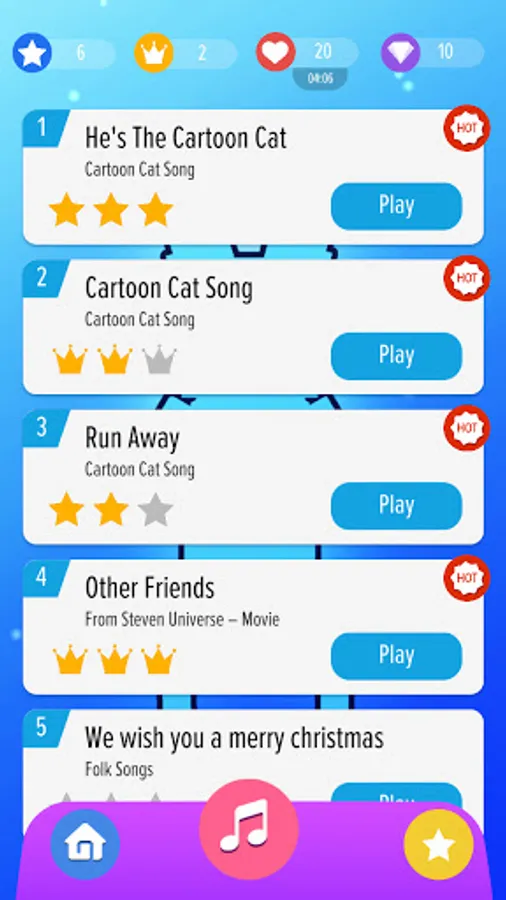 Try this magic piano tiles game, It has almost all Popular Cartoon Cat songs π.