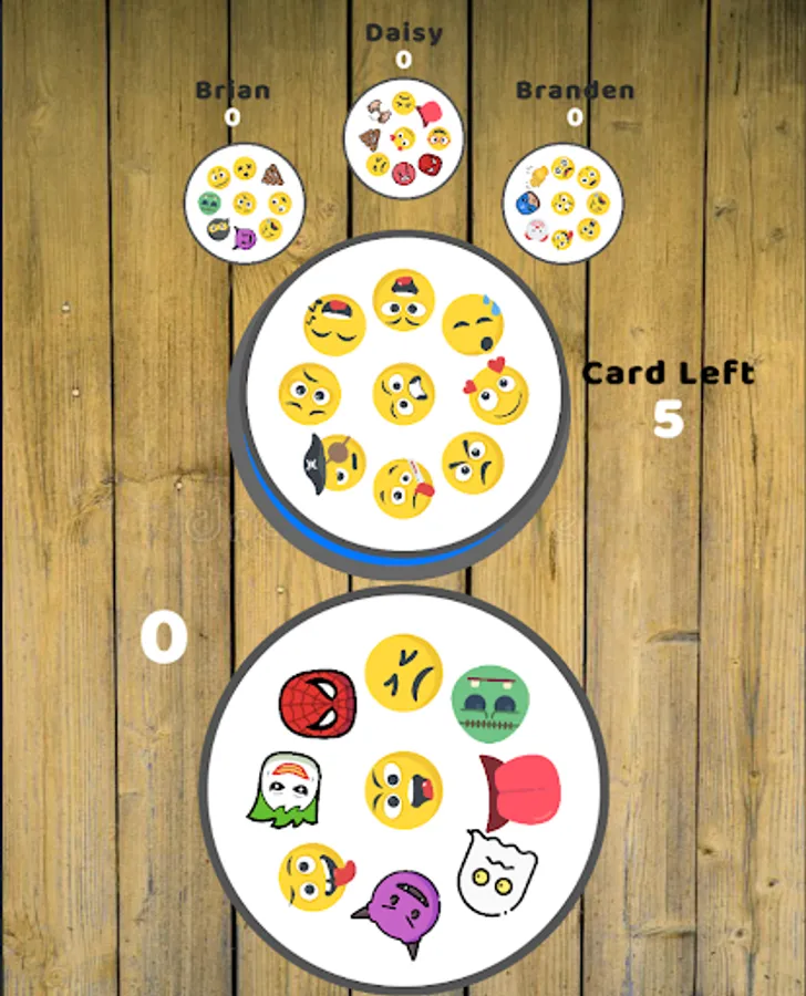 Emoji Dobble is a fun card game in which players spot matching symbols between their cards and the cards on the table. The goal of the game is to be the first player to find a matching symbol on both your card and the card on the table.