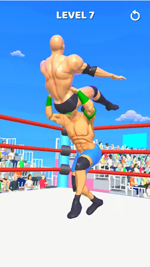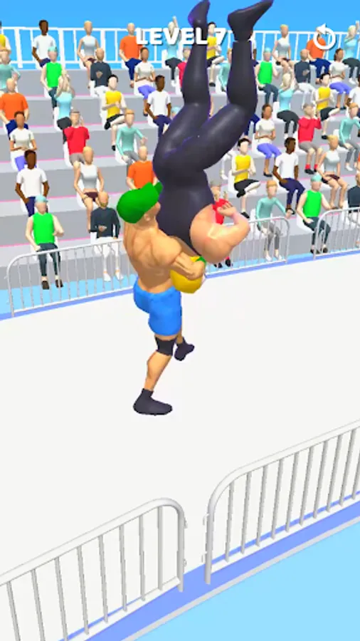 A wrestling themed runner game where the player runs towards the ring having fun interactions as a wrestler.