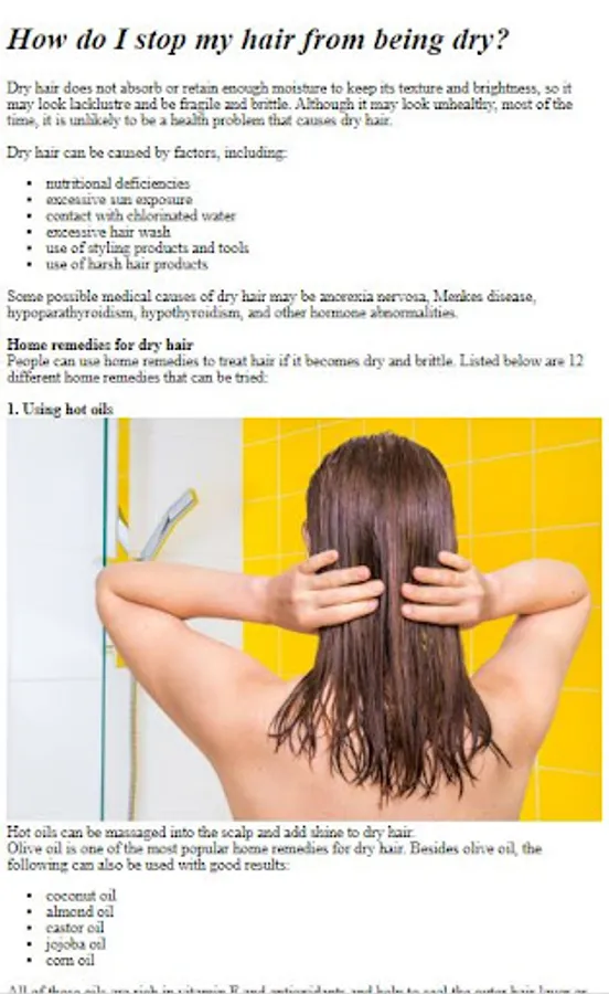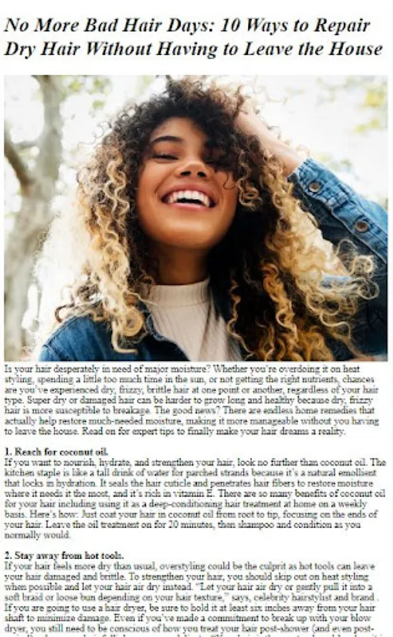 📲 User-Friendly Interface: Enjoy a user-friendly interface that ensures effortless navigation and a seamless experience as you explore the world of Dry Hair Care. Access the information you need to revive your hair and achieve the healthy, luscious locks you desire.