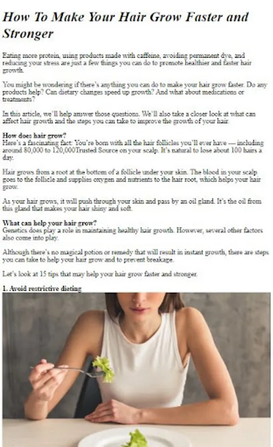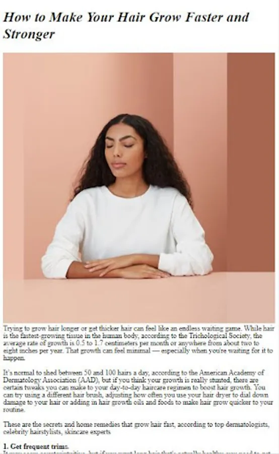 Access expert tips and insights from renowned professionals in the field of hair growth and hair care. Our app's curated content provides authoritative guidance to help you make informed decisions about your hair care routine. Stay updated with the latest research and trends in the quest for healthy, thriving hair.
