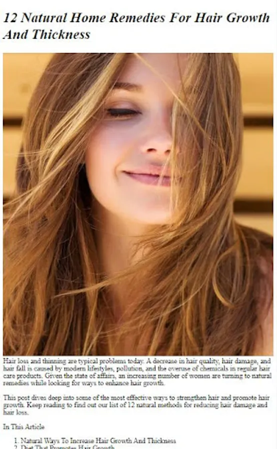 Explore a variety of natural solutions that have been trusted for generations to stimulate hair growth. Our app provides a collection of tried and tested remedies, including herbal treatments, essential oils, and nurturing hair care practices. Embrace the power of nature and let your hair flourish without harmful chemicals or invasive procedures.