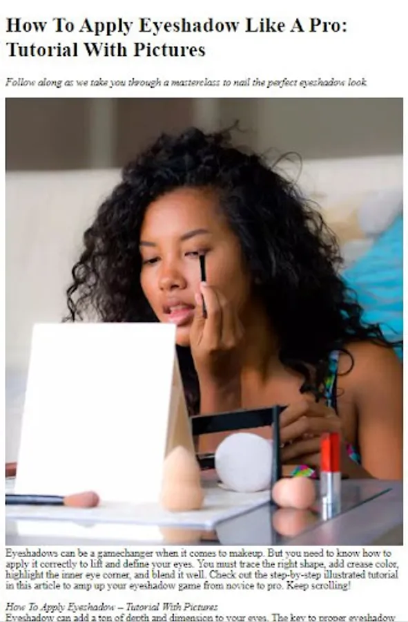 Download How To Apply Eyeshadow Like a Pro now and embark on a transformative eye makeup journey. Whether you're a beginner or an aspiring makeup artist, this app will empower you to create mesmerizing eyeshadow looks with confidence and precision.