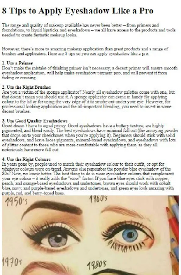 Access insider tips and advice from professional makeup artists. Our app features expert insights on color theory, eye shape considerations, and troubleshooting common eyeshadow application issues. Stay up-to-date with the latest trends, product recommendations, and techniques to refine your skills.