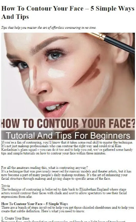 Download How to Contour Your Face now and unleash your inner artist. From everyday makeup looks to special occasions, our app is your ultimate companion for mastering the art of face contouring and achieving a flawlessly sculpted look that will make heads turn.