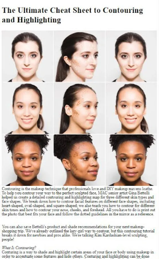 Explore a variety of contouring techniques and find the one that suits your desired look. Whether you prefer a soft and natural contour or a more dramatic and defined effect, our app covers various techniques, such as the classic 3-step method, draping, and strobing, to help you achieve your desired result.