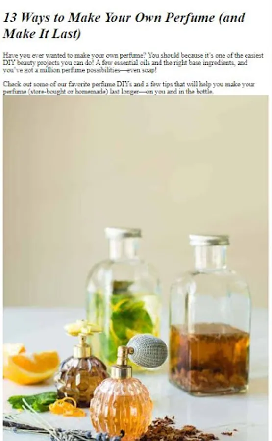 Welcome to "How to Make Your Own Perfume," the ultimate guide to crafting your unique fragrance masterpiece. Discover the art of perfumery and unlock your creativity with our expert-led app. Whether you're a perfume enthusiast, an aspiring perfumer, or simply looking to express your individuality, this app is your ticket to a scent-sational journey.
