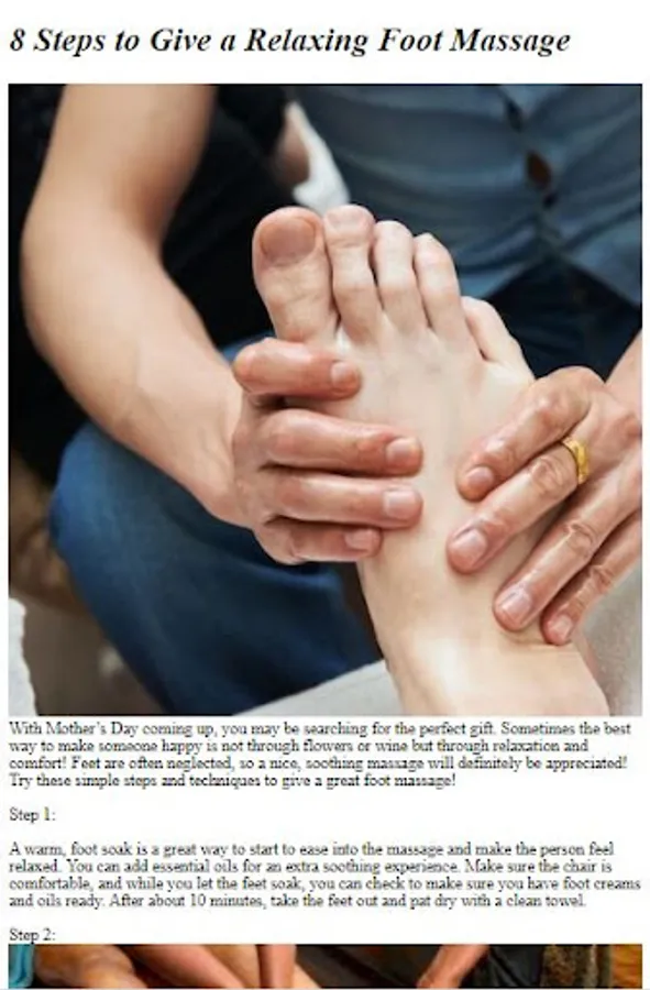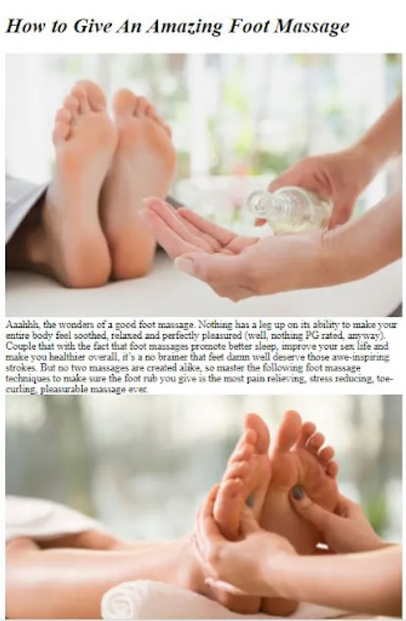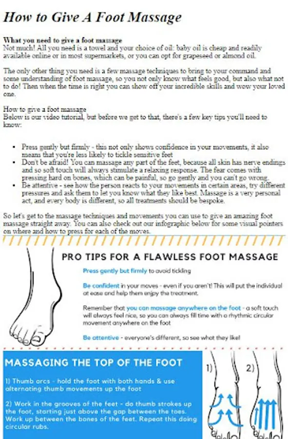 Download "How to Give a Foot Massage" now and embark on a journey towards becoming a skilled foot massage practitioner. Unlock the power of relaxation and healing as you learn the art of providing soothing foot massages. Bring comfort, relief, and joy to your loved ones with every touch. Start your foot massage journey today!