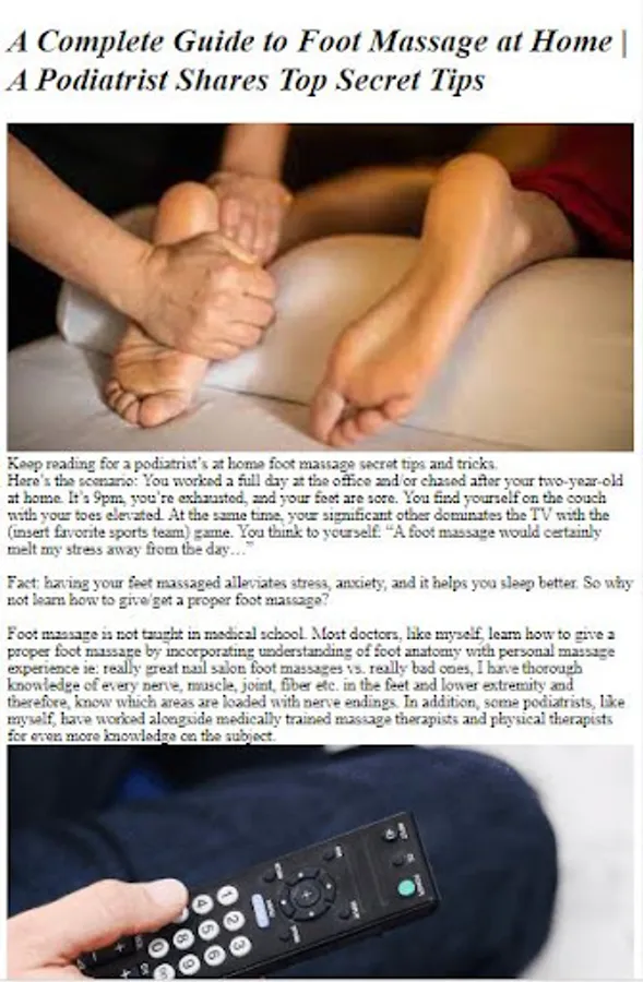 🌟 Step-by-Step Tutorials: Follow our detailed, step-by-step tutorials that guide you through each stage of a foot massage. From preparing the massage area to understanding pressure points and applying various techniques, we'll help you master the art of foot massage with ease.