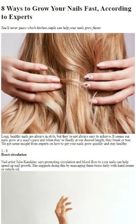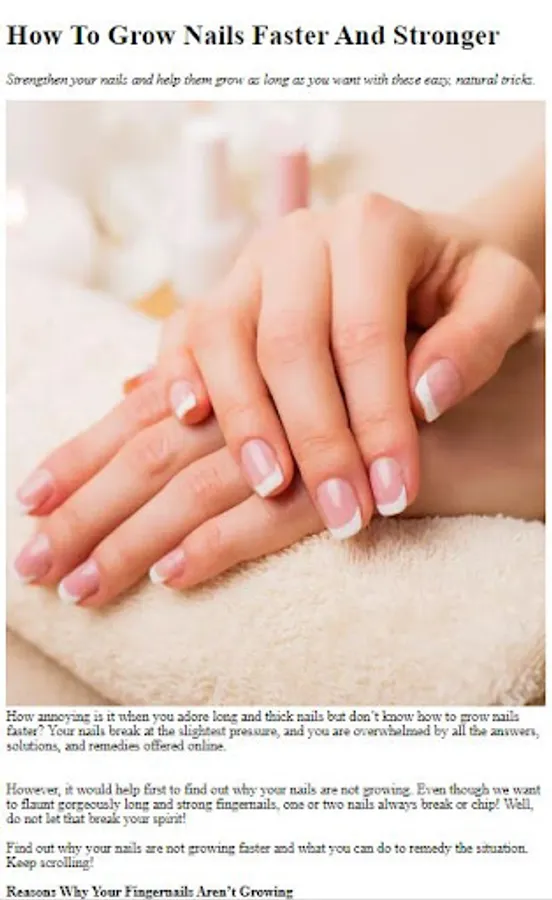 Welcome to our app, How to Grow Nails Faster, your ultimate guide to achieving long, healthy nails. If you're looking for effective tips and techniques to promote nail growth, you've come to the right place! Our app offers expert advice, practical remedies, and valuable insights to help you unlock the secret to faster and stronger nail growth.