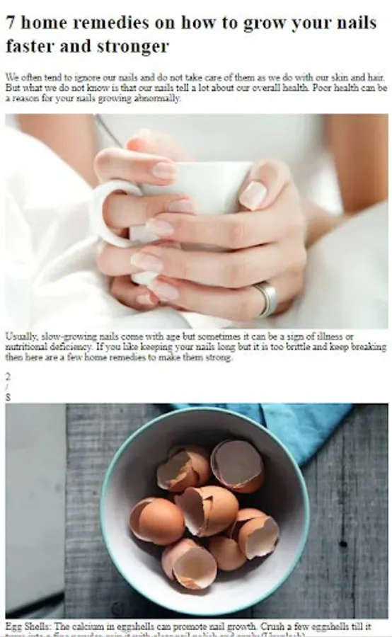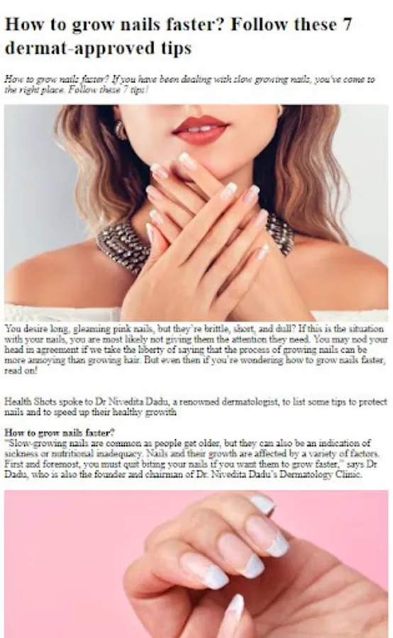 Discover the secrets to boosting nail growth naturally. Our app shares valuable insights into stimulating blood circulation to the nail bed, using oils and serums for nail growth, and adopting healthy habits that contribute to faster nail growth. Unlock the potential of your nails and witness them grow with newfound vigor.