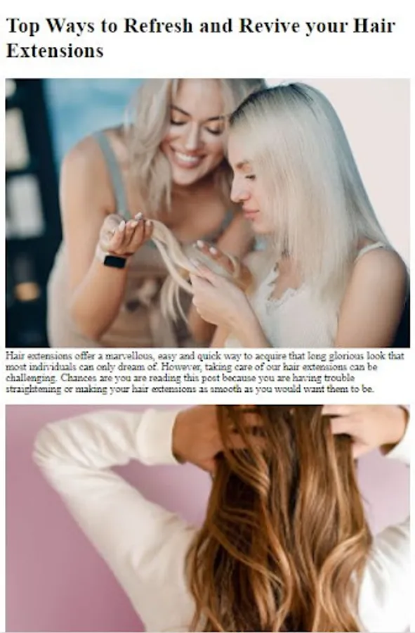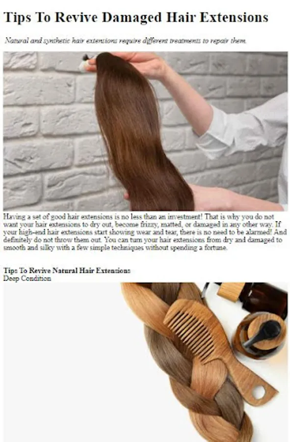 No more struggling with damaged or worn-out hair extensions. Our app equips you with a comprehensive collection of proven techniques and insider tips from top hair extension experts. From mending split ends to replacing clips, we cover it all, empowering you to revive and extend the lifespan of your beloved hair extensions.