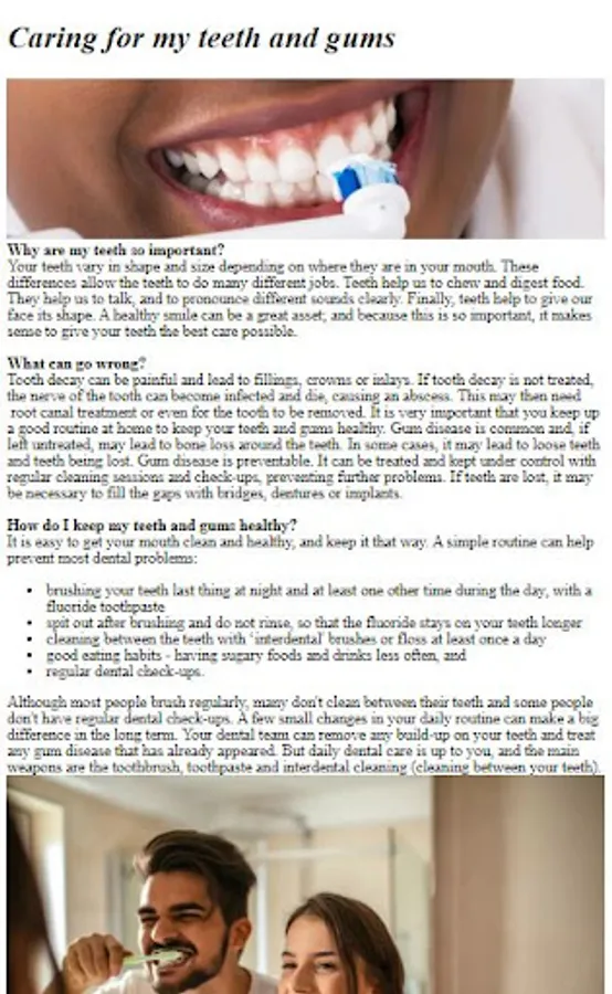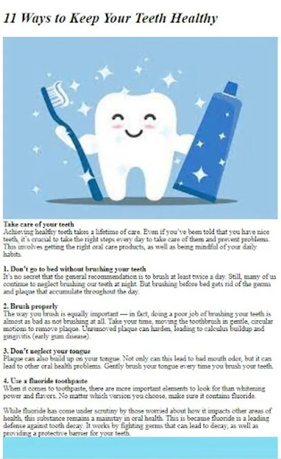 Discover the key to a confident and radiant smile with our easy-to-follow dental care practices. Whether you're looking to prevent cavities, maintain fresh breath, or improve your overall oral health, this app is your go-to resource for all things dental care.