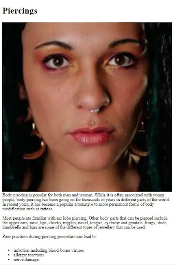 Benefit from the expertise of professional body piercers who share their insider tips and tricks for achieving safe and professional piercings. Our app provides guidance on proper aftercare, choosing reputable piercing studios, and understanding potential risks. Say goodbye to uncertainty and hello to a piercing experience that prioritizes your safety and satisfaction.