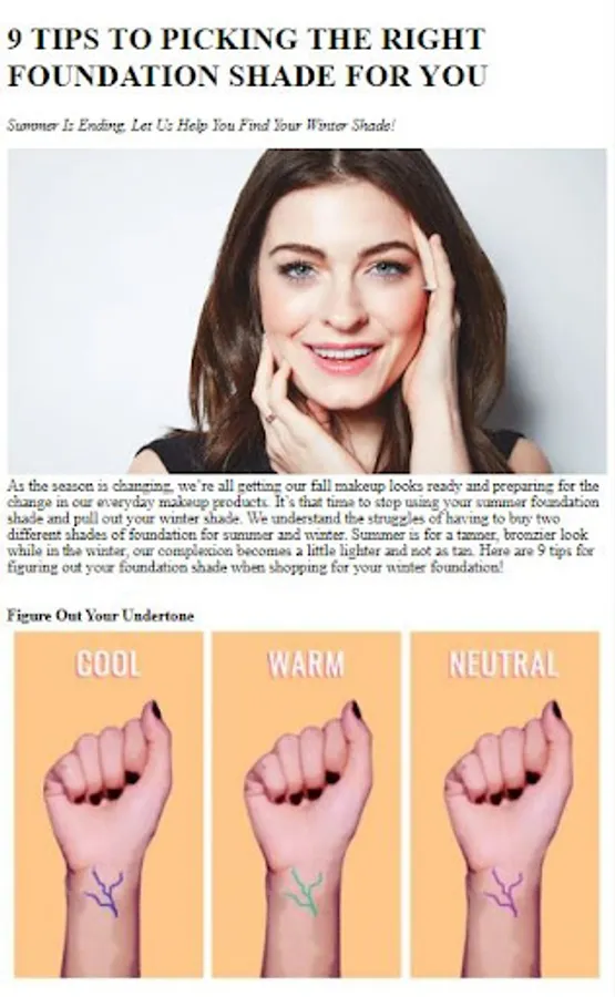 Ready to achieve a flawless complexion effortlessly? Download Find the Right Foundation for Your Skin now and embark on a journey towards finding your perfect foundation match. With our expert guidance, personalized recommendations, and a wide range of options, you'll discover the foundation that enhances your natural beauty and boosts your confidence. Get ready to rock a complexion that turns heads with Find the Right Foundation for Your Skin.